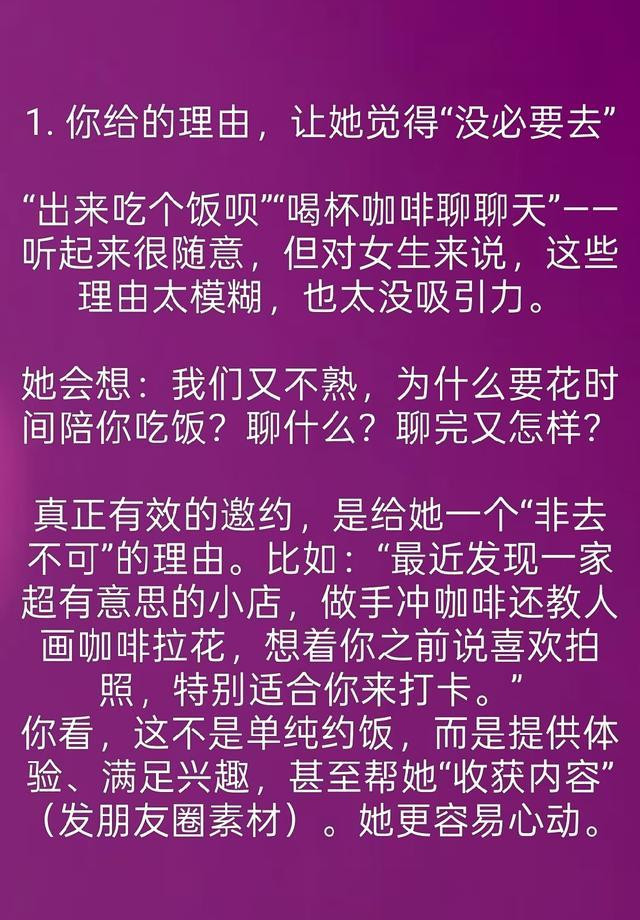 思要收效邀约中意的女生,不单是靠一句“出来吃个饭”那么简便。